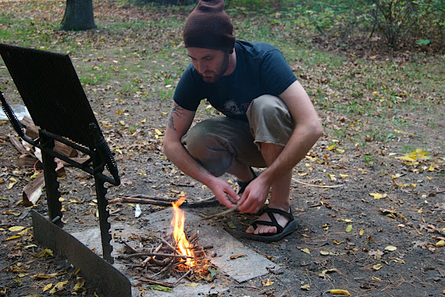 can you even remember what it feels like to not be bundled up? to be able to walk outside without hats, scarves, coats and gloves? to be able to jump on your bike without first piling on the layers and the heavy socks and the face masks? looking at these photos of jp, otto and i --camping in northern illinois late this past summer-- i can't even remember the air on my skin not hurting.